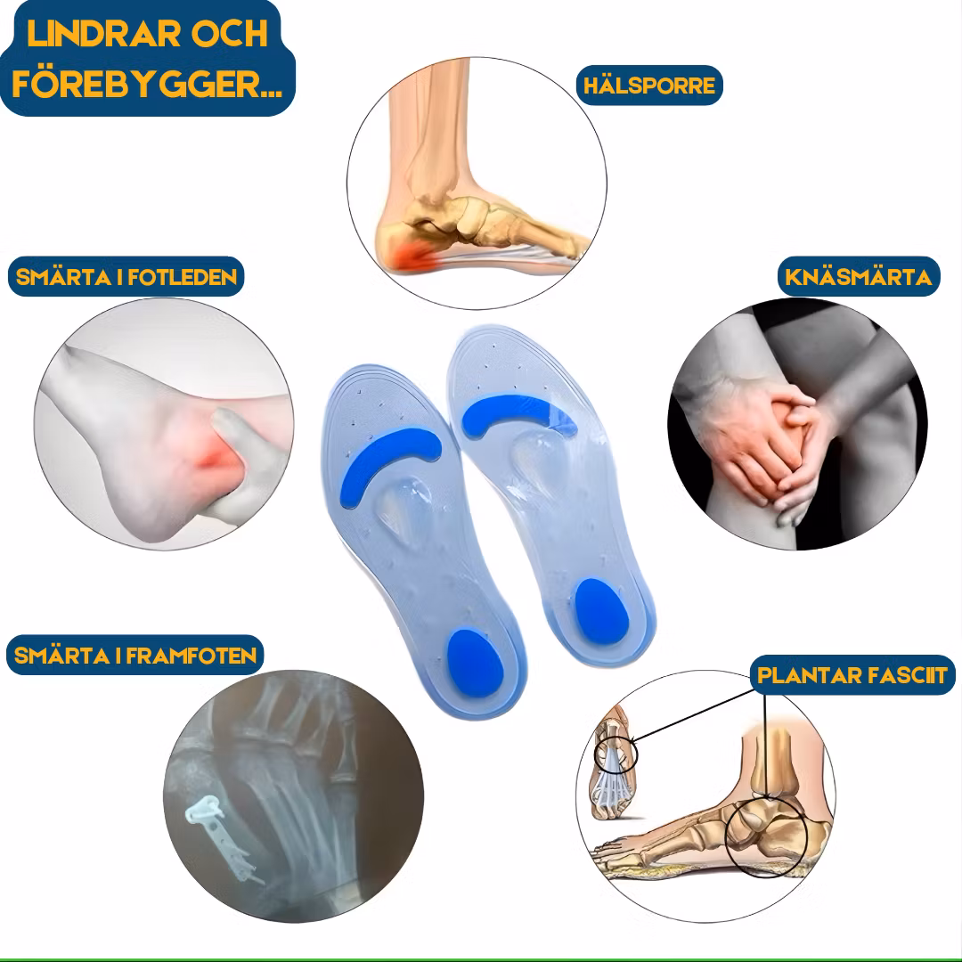 Trofast Skoinlägg i Mjuk Gel (1 par) 295 kr Storlek 35-36 37-38 39-40 41-42 43-44 45-46 Finns i lager! Lägg till i varukorg MER INFO Egenskaper och fördelarDe är mjuka, stötdämpande och bekväma att ha på sig.De är tillverkade i ett slitstarkt gel-material. Tjockleken är 1,5 cm, vilket är perfekt för att ge bra stötdämpning. StorleksguideStorlekLängd (cm)35-3623 cm37-3824,5 cm39-4025,5 cm41-4226,5 cm43-4427,5 cm45-4629 cmTvättrådHandtvätta dem med tvål och vatten.Låt dem lufttorka.Använd dem inte i våta eller fuktiga skor för att maximera hållbarheten.