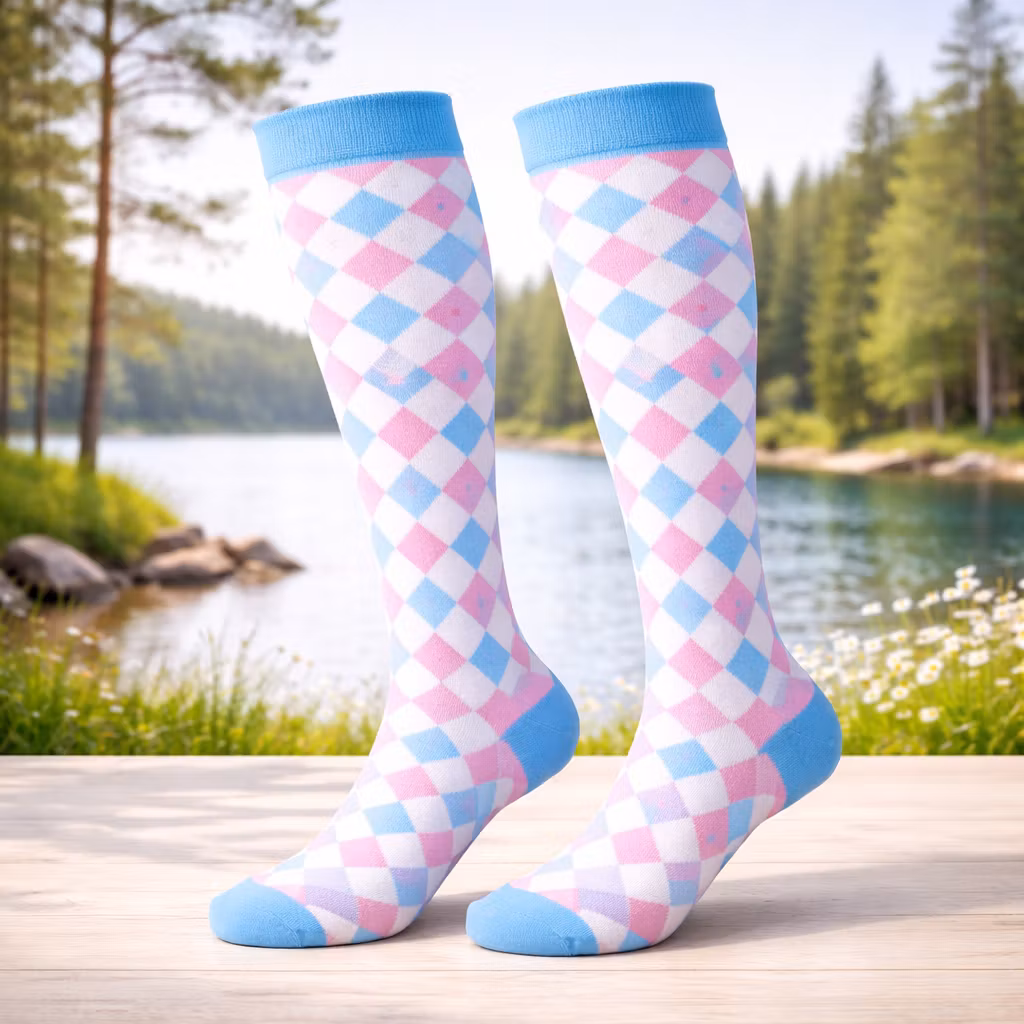 Stödstrumpa Pink and Blue Squares Nr 94